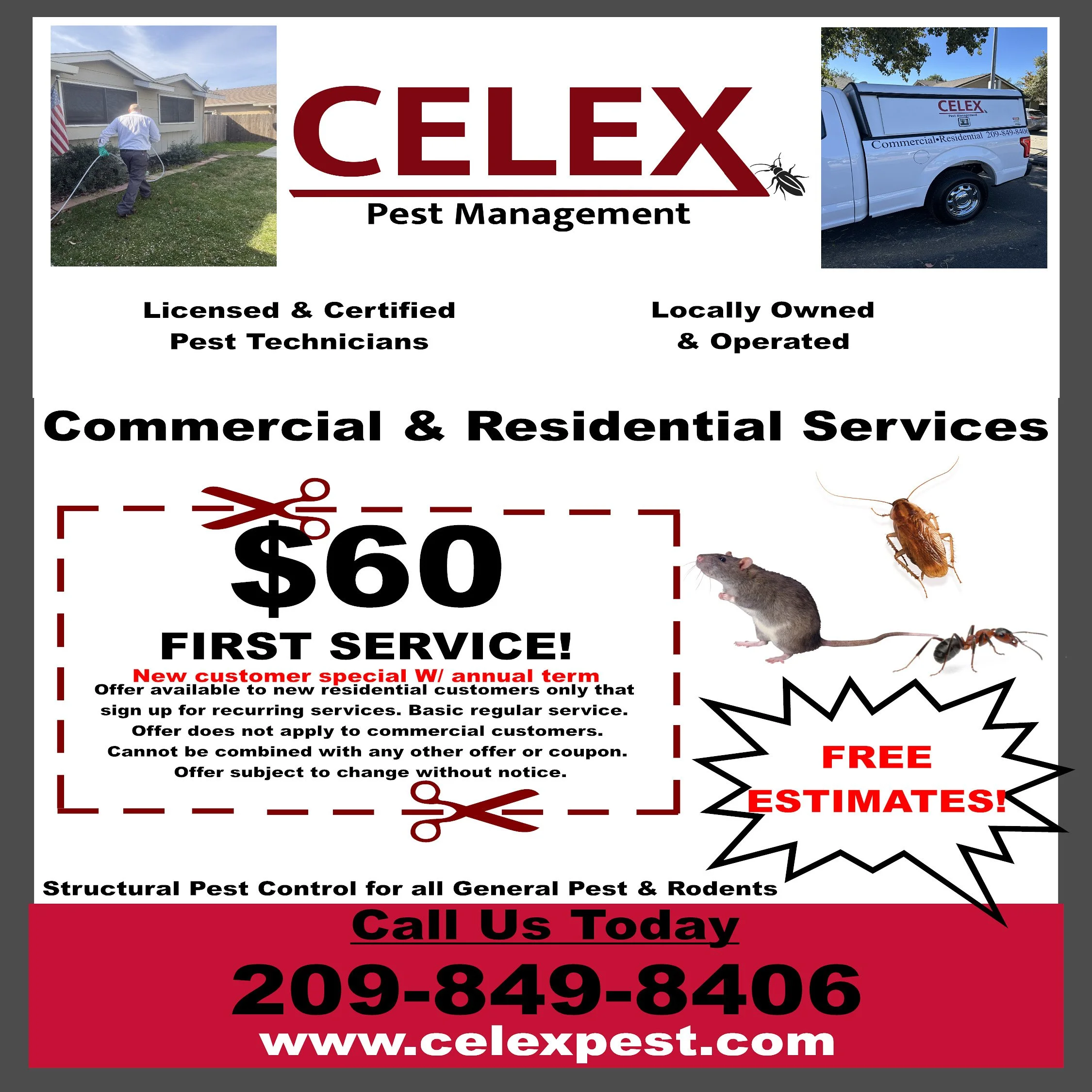 We are conveniently located in/ service Modesto and surrounding areas. Need a Tech to come out and give you a free estimate? No worries – we’ve got you covered here at CELEX.